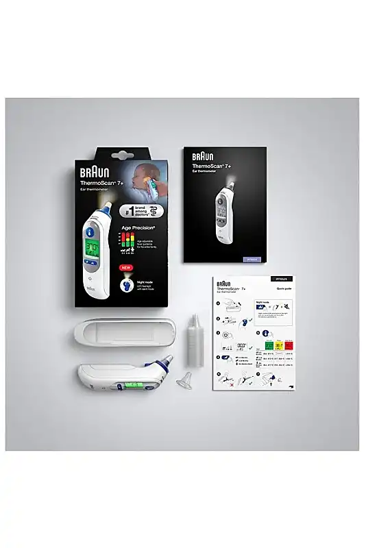Braun’un bugüne kadarki en gelişmiş kulaktan ateş ölçeri! ThermoScan® 7+ Plus, ikonik Age Precision™ teknolojisini yeni eklenen Gece Modu ile birleştirerek, günün her saatinde ailemiz için en hassas ve en konforlu ölçüm deneyimini sunar.