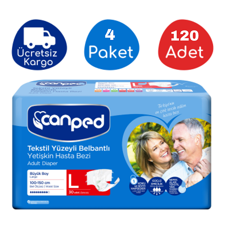 Canped Belbantlı Tekstil Yüzey Hasta Bezi L-Large Beden 120 Adet